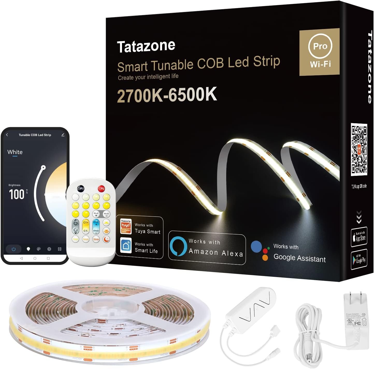 16.4ft Tunable White Smart COB Led Strip Light Kit, CCT 2700...