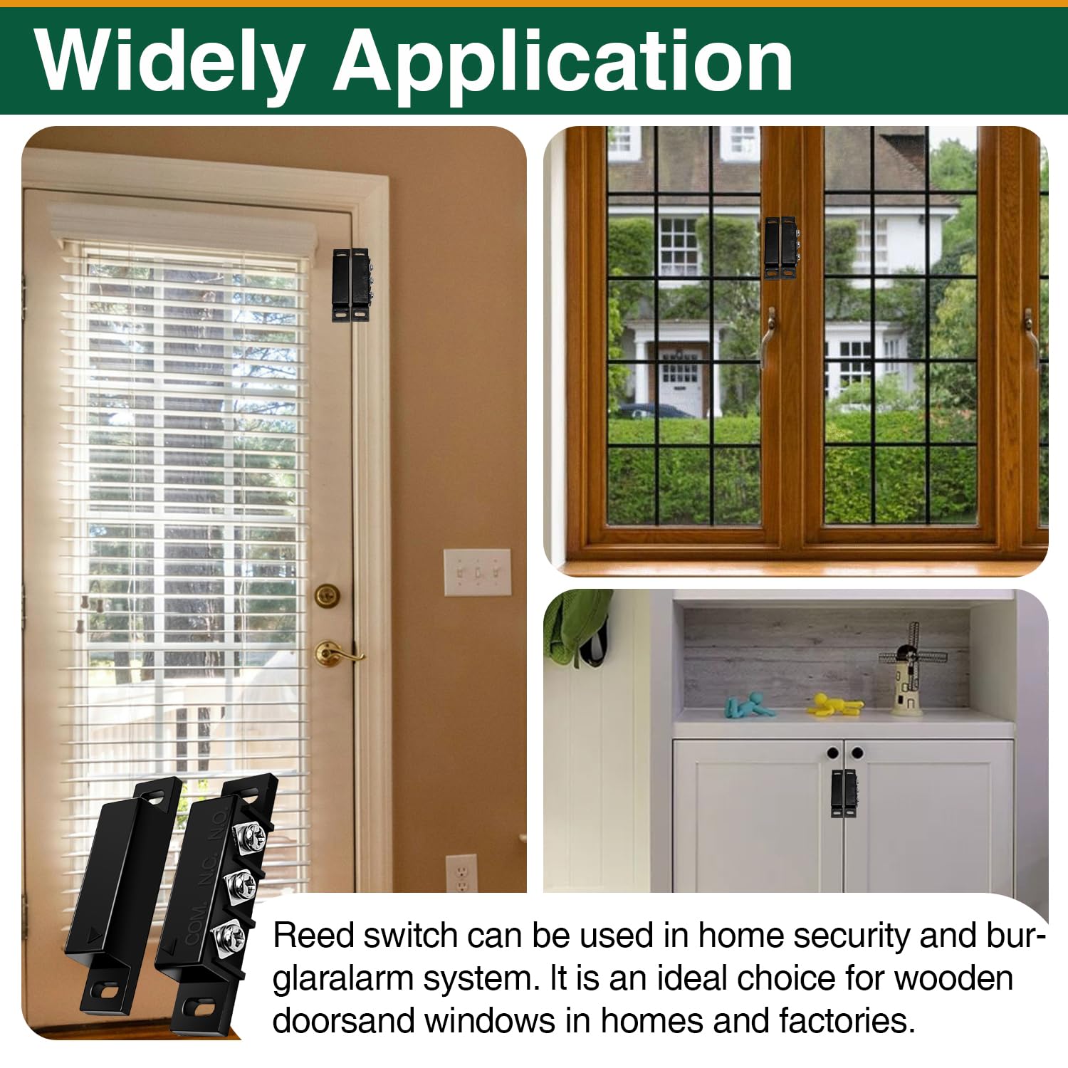 Wide Application Range: Perfect for diverse scenarios, our magnetic door sensor set supports automatic lighting for doors and garages, enhances security with alarm systems, and integrates smoothly with fire protection setups, meeting all your needs