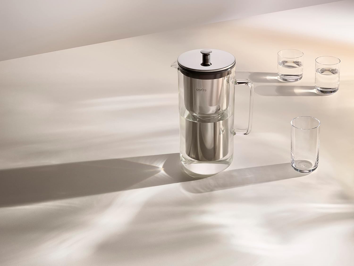 Sustainable Glass Water Filter: Upgrade your kitchen with a glass water filter pitcher that eliminates the need for disposable plastic. The Aarke Purifier features a patented, refillable stainless steel filter cartridge paired with a timeless glass carafe for a cleaner drinking experience