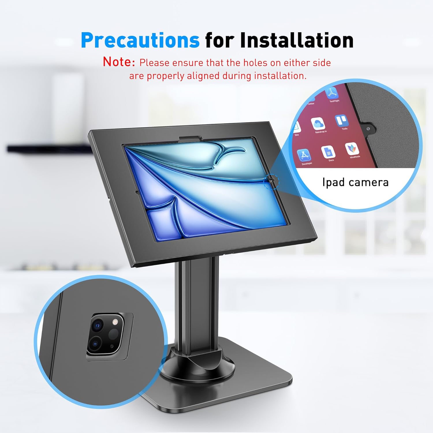 Ultimate Anti-Theft Security: Built as a security tablet stand with a lock-and-key enclosure to deter tampering in busy spaces. Use the pre-drilled holes for countertop mounting—ideal for retail, POS checkouts, and front-desk sign-in stations.