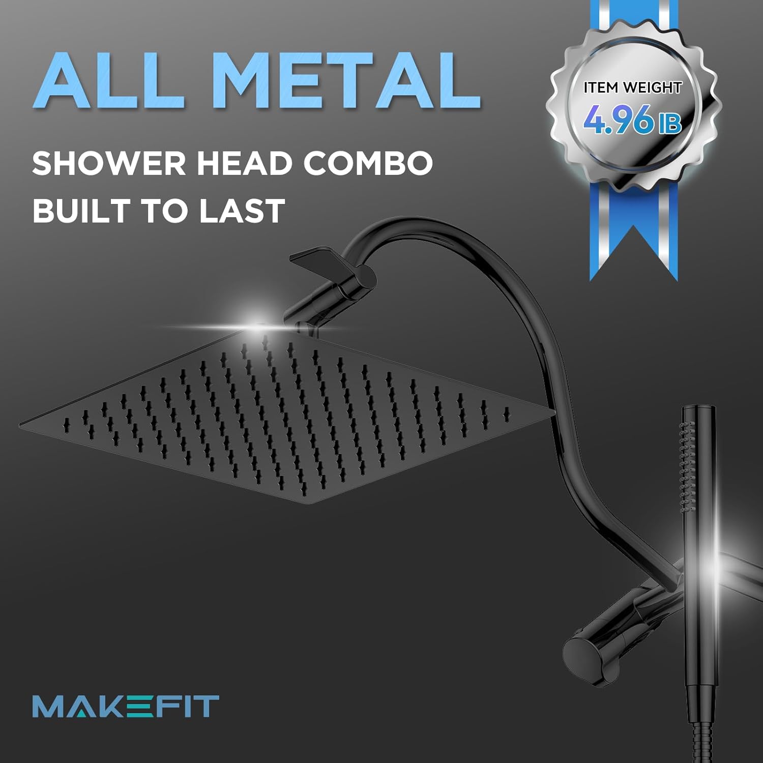 All Metal Shower Head Combo, Built To Last: Our rain shower head and handheld shower wand are crafted from rust-proof and break-resistant metal, outlasting plastic showerheads in durability and lifespan. Its solid all-metal construction ensures unmatched durability, making it a long-term investment for your bathroom. And it’s the perfect upgrade to elevate your bathroom’s style.