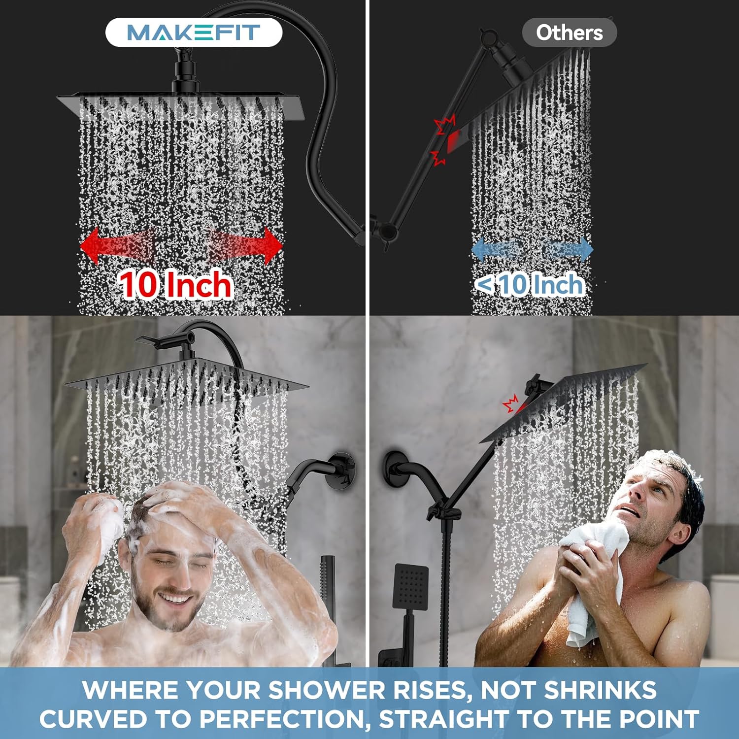 Choose Your Favorite Shower Sprayer: MakeFit dual shower head combo features three shower options, use the rainshower and handshower separately, or together for maximum coverage. You can smoothly switch between rain shower head or handheld showerhead according to your need.