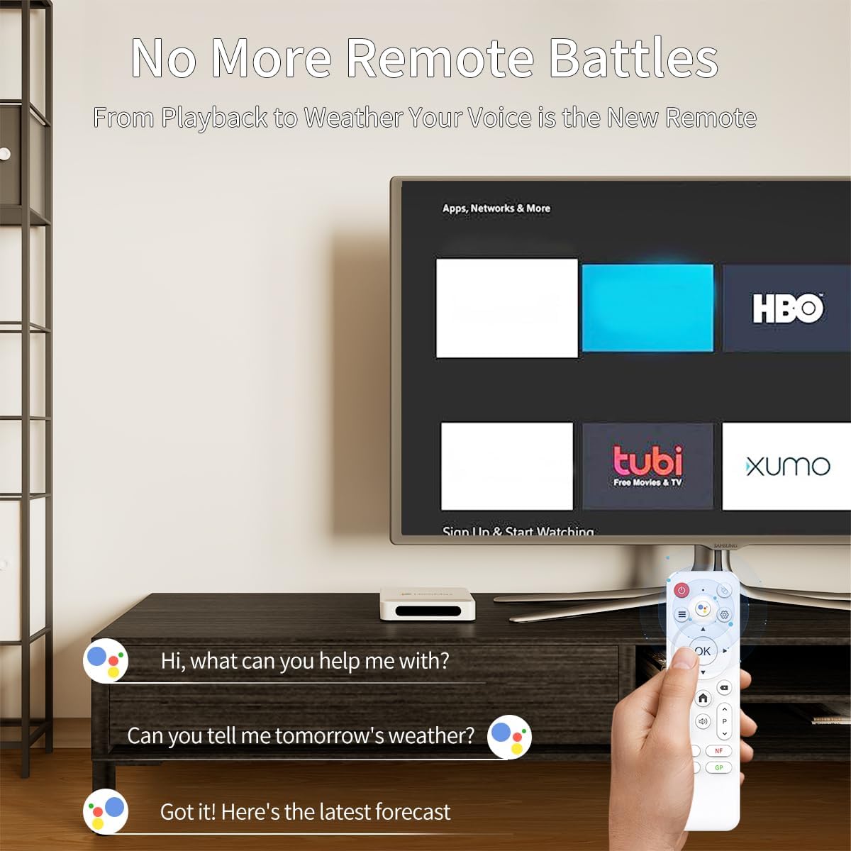 Voice-Controlled Convenience – The included remote with built-in Ggle Assistant support allows hands-free operation of your smart TV box, making it easy to search content, control playback, or manage smart home devices without typing or complex navigation.