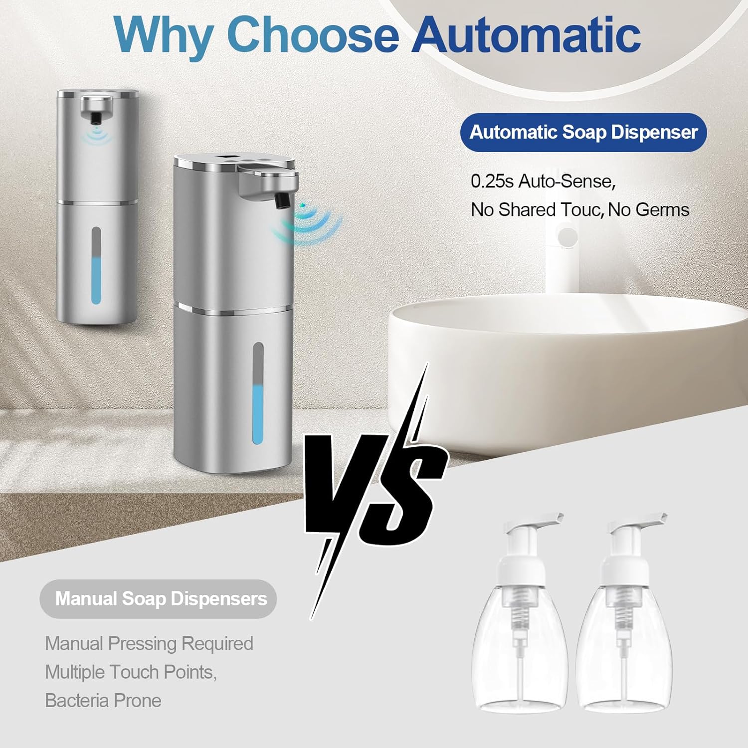This automatic soap dispenser works perfectly and makes handwashing quick and hygienic. It dispenses the right amount of soap every time and looks sleek on my sink. I love how easy it is to use and refill — such a great upgrade for the bathroom or kitchen!