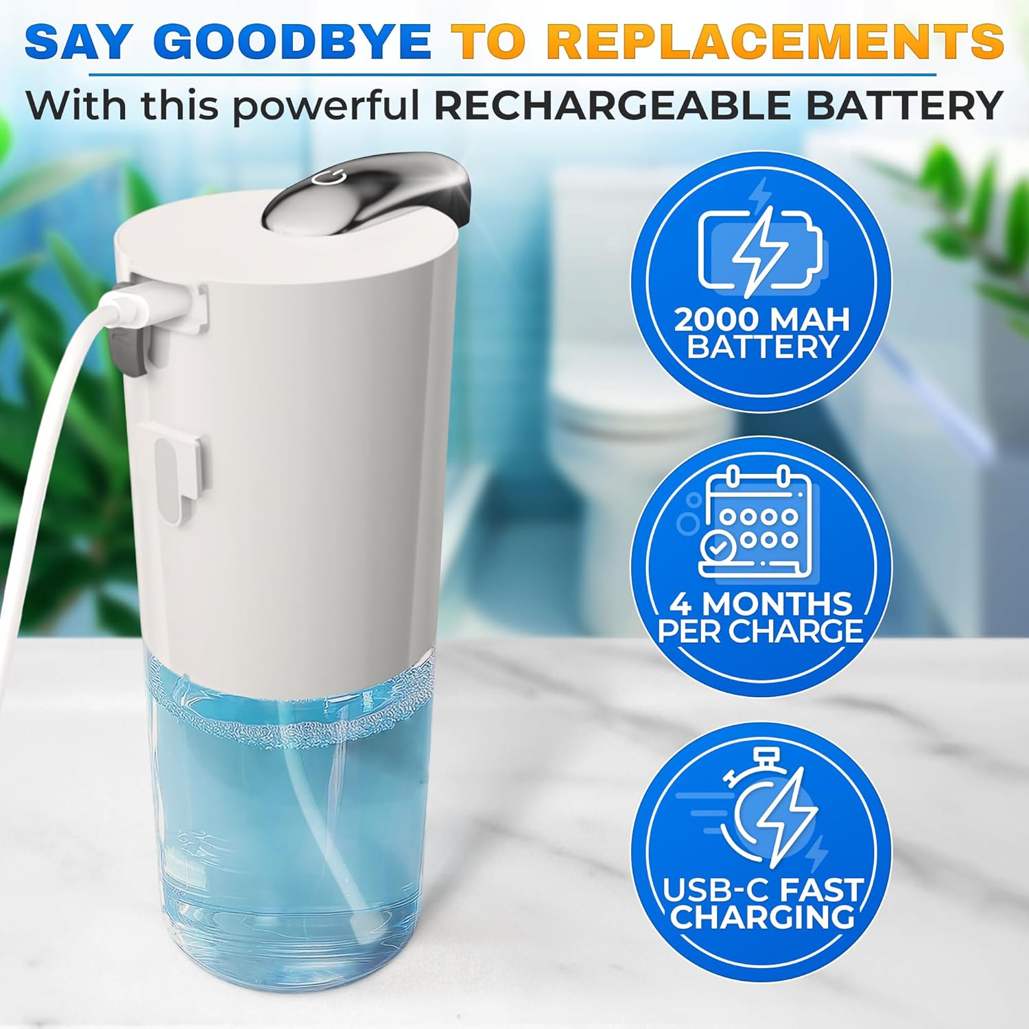 USB Recharge: Forget constant accumulator replacements—this foam soap dispenser automatic charges via USB and works reliably as a low-maintenance soap dispenser bathroom solution for daily routines