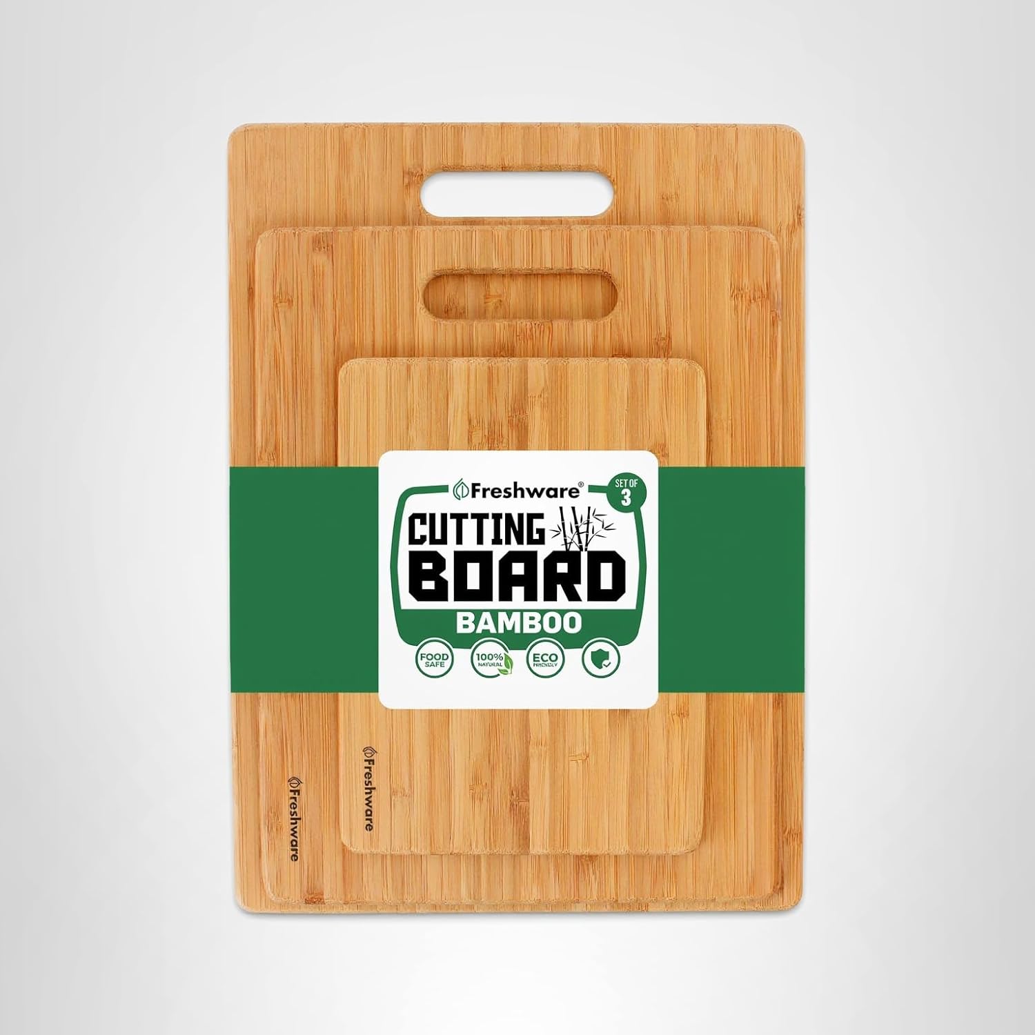 Unique Craftsmanship Cutting Board Set in 3 Sizes: Freshware has cleverly designed these boards to satisfy even the most demanding chef needs. The top and bottom of the cutting boards are vertical whereas the middle section is horizontal. We built them that way so as to add extra strength to the cutting board. Choose between the large 13 x 9.5 x 3/8 ” (33 x 24.1 x 1 cm), medium 11 x 8.5 x 3/8 ” (27.9 x 21.6 x 1 cm) or small 8 x 6 x 3/8 ” (20.3 x 15.2 x 1 cm).