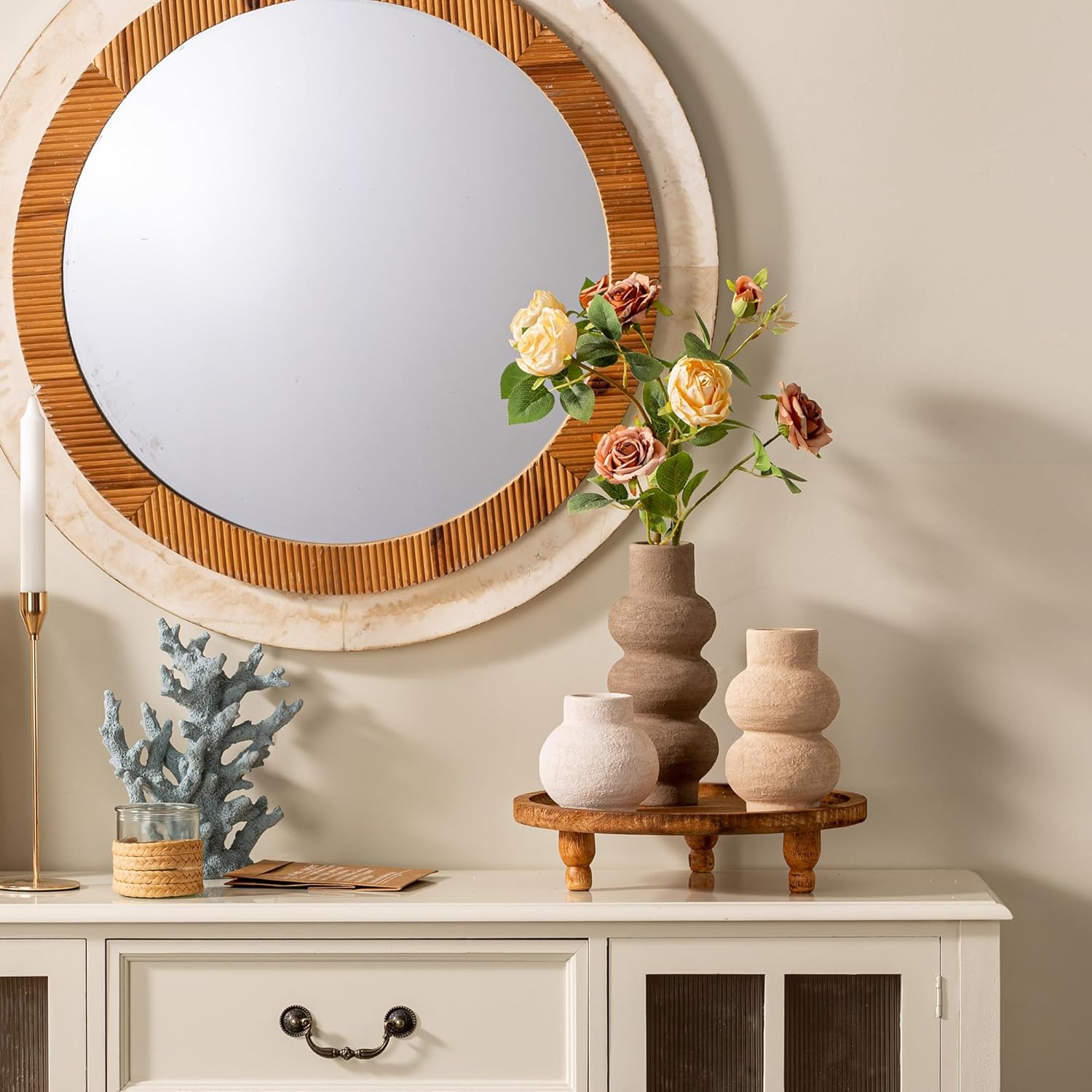 【High-quality & Durable Ceramic】Expertly crafted from high-quality ceramic and fired at high temperatures, vase set are thick, sturdy, and resistant to breaking or leaking. The non-slip base ensures stability while protecting your furniture from scratches.