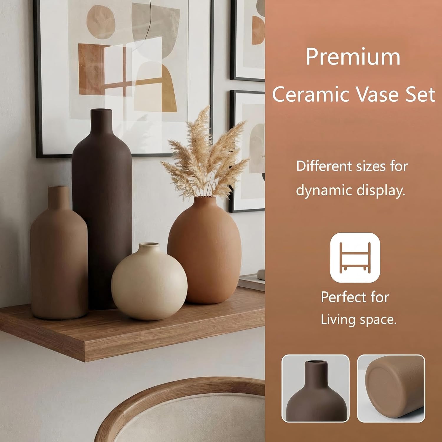 I finally found the perfect addition to my entryway table with this ceramic vase set. These vases have a lovely, sturdy weight to them that makes me feel confident they won’t easily tip over, even in a high-traffic area.The earthy, neutral aesthetic is exactly what I was hoping for to brighten up the front of the house. They have a subtle, modern farmhouse vibe that blends in beautifully without being too flashy. I’m really impressed by the varied shapes in the set of four, which makes them look like a curated collection rather than a generic matching set.I decided to pair them with some natural pampas grass and dried flowers, and the result is just gorgeous. The openings are the right size for a few stems, allowing for a minimalist look that still feels warm and welcoming.