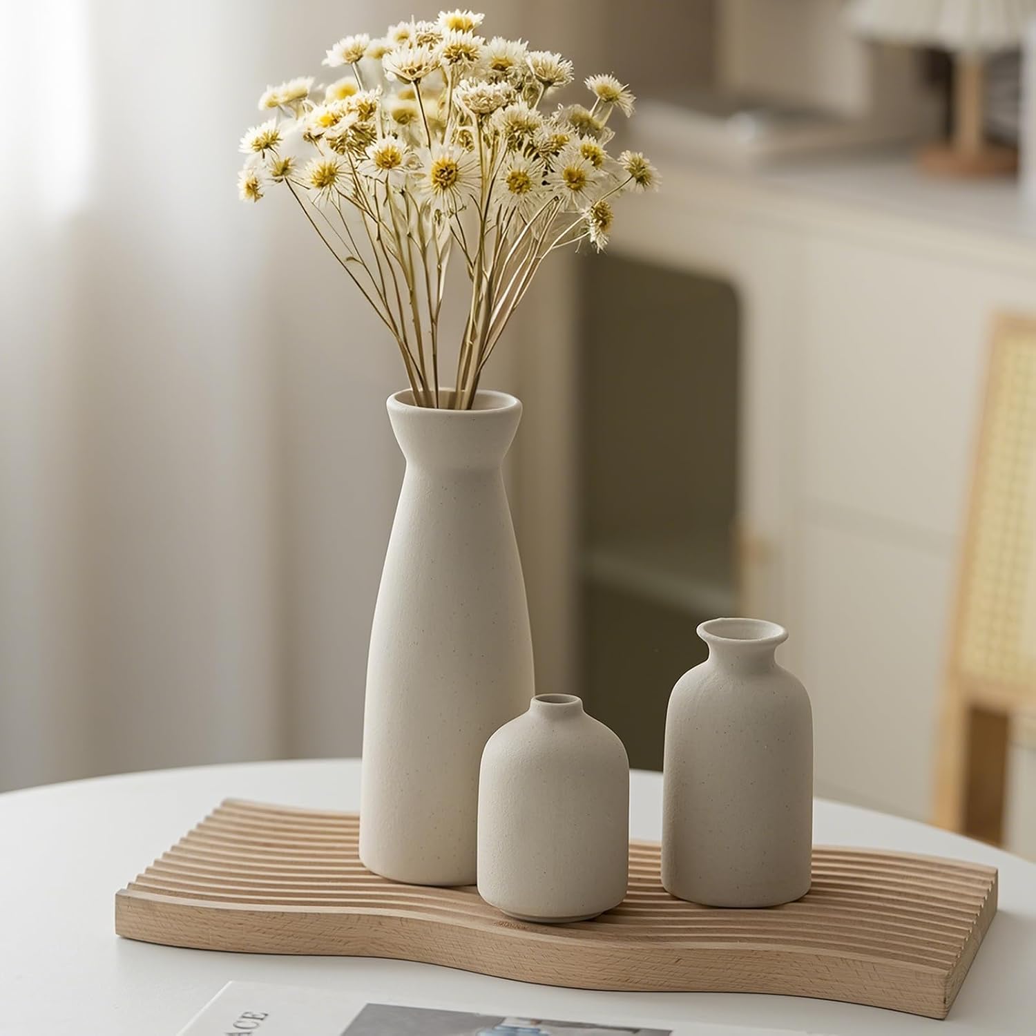 13 reviews for Distressed Ceramic Vase Set of 3, Modern Bohemian Farmhouse Home Decor, Pampas Grass Dried Flowers Vases for Living Room, Dining Room, Bedroom, Kitchen, Bathroom, Office, Entryway (Beige)