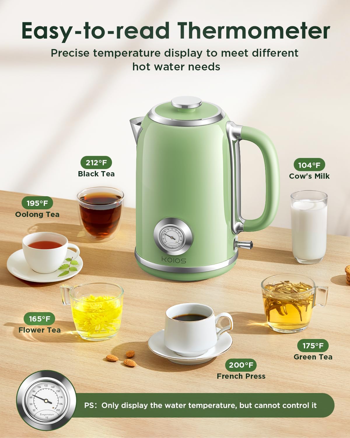 EXCELLENT CUSTOMER SUPPORT: KOIOS retro electric kettle is a perfect present for housewarming parties, weddings, birthdays, Thanksgiving Day, and Christmas. Each electric tea kettle has been rigorously tested by our company to ensure its quality and durability. We offer 30-day refund, 2-year replacement, and lifetime customer service. If you have any questions, Please don’t hesitate to reach out to us, and we will reply to you within 24 hours
