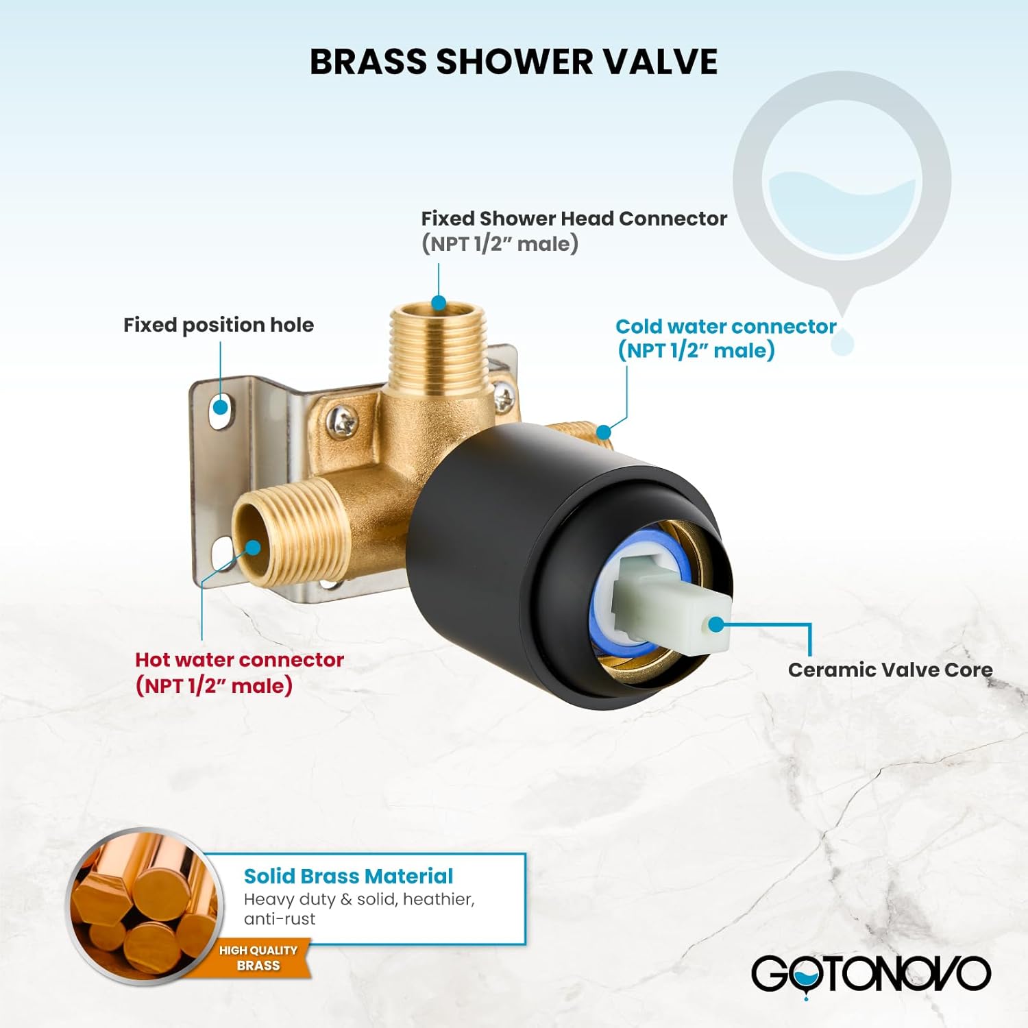 【Durability Material】:Matte Black finish provides a modern look, premium metal materials ensure corrosion resistance and durability, ensuring durability and reliability. The valve body of this shower trim kit is made of copper, which is more solid.