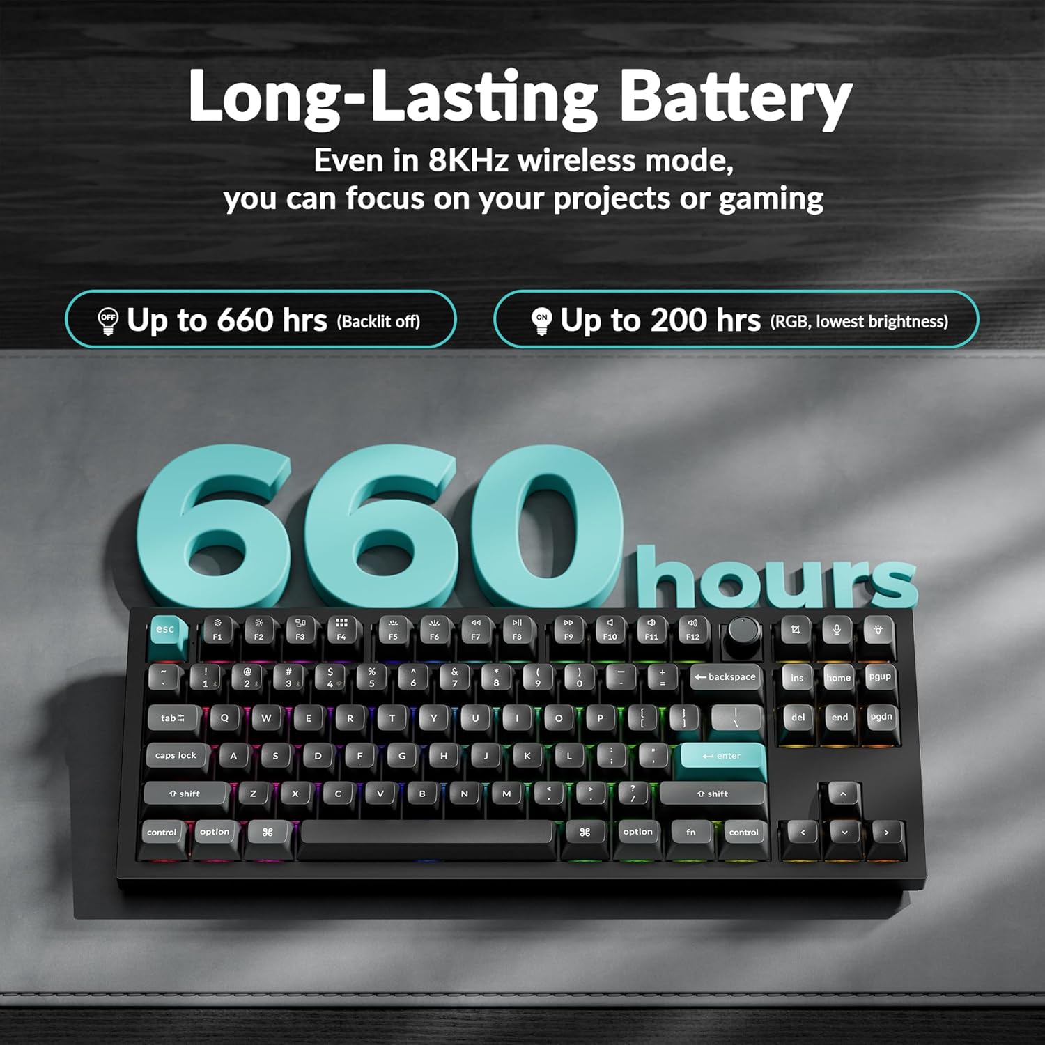 Performance Beast on multiple OS: Thanks to the ZMK firmware, the Q3 Ultra’s working time boosted to 660 hours at 8KHz polling rate (backlit off)—or up to 200 hrs with minimal backlit, ensuring uninterrupted performance on any systems.