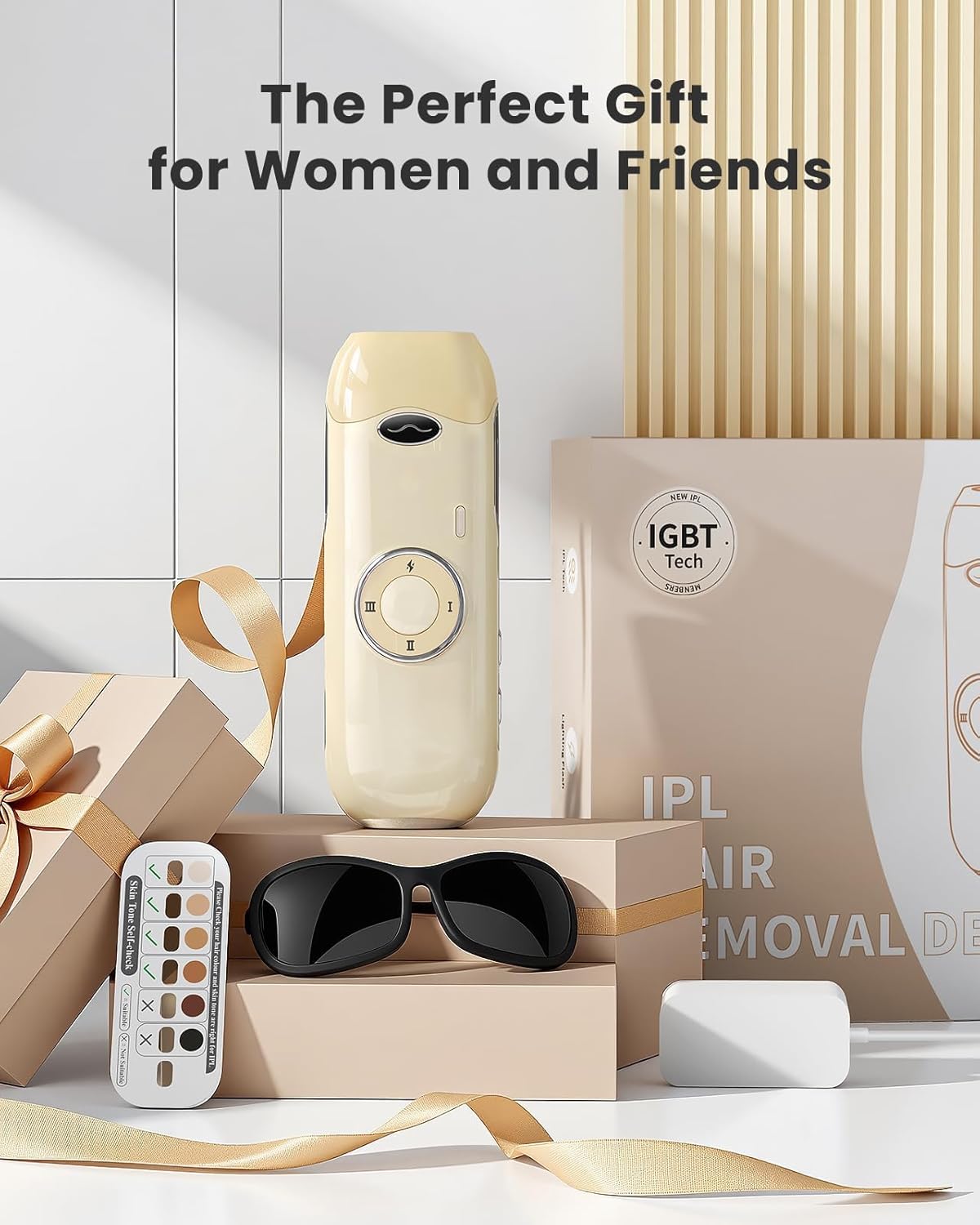 【Safe lPL Technology & Laser-like Results】 At-home Hair Remover is designed with advanced IPL technology toensure safety and effectiveness for most skin and hair types,for both women and men. Achieve hair reduction in thecomfort of your own home, say goodbye to the hassle offrequent razors and hair removal waxes, Safely removeunwanted hair from traditional laser treatments without therazor burn, ingrown hairs, and pain.
