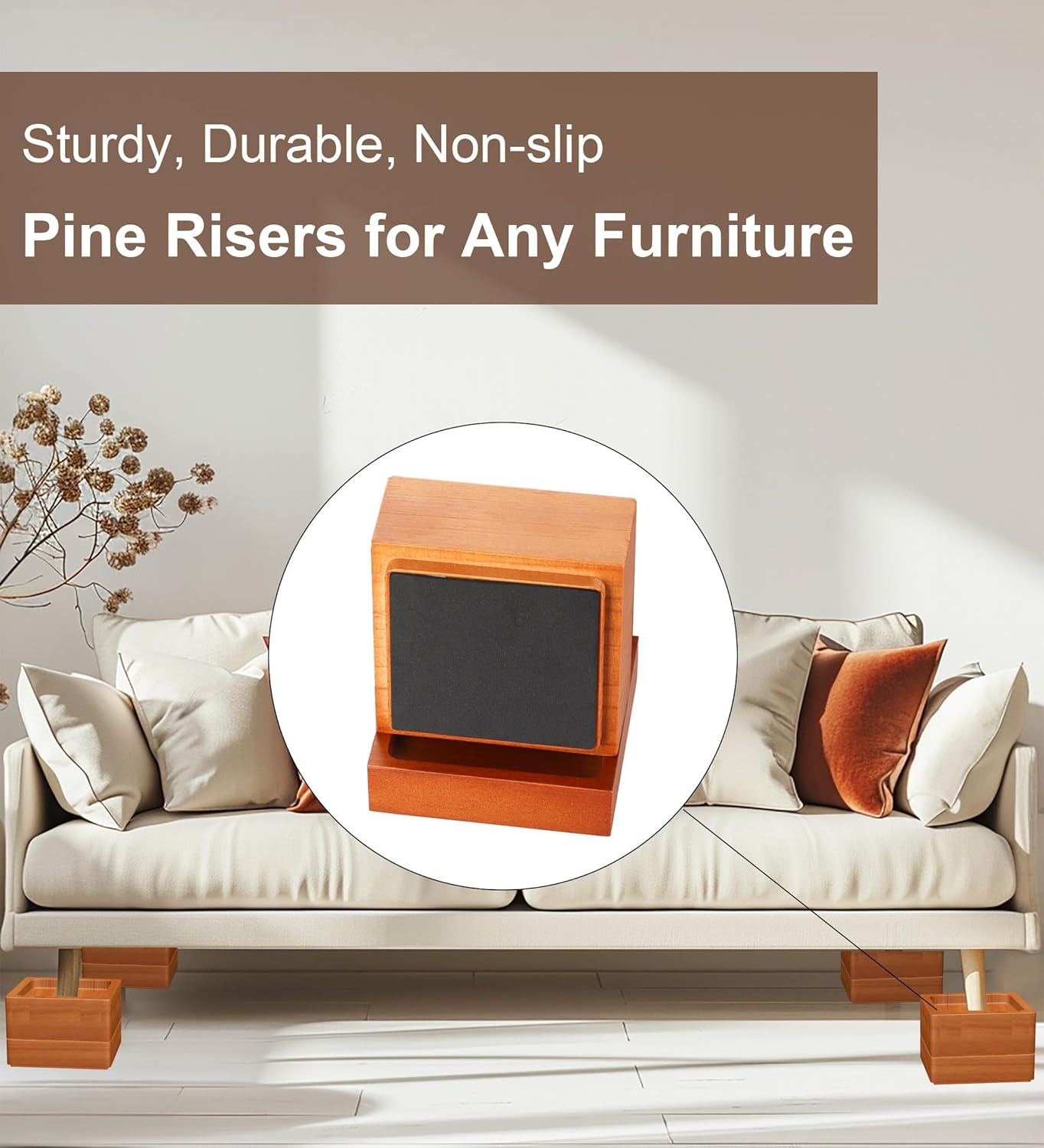 Sophisticated and Versatile Design: Featuring a stylish pine finish, these furniture risers are designed to complement a wide range of decor styles, from contemporary to traditional. The timeless wood finish effortlessly blends with various furniture pieces, whether in the living room, bedroom, or office. This versatility ensures that the risers enhance the overall look of your space, providing both practicality and a refined touch that elevates your home decor.
