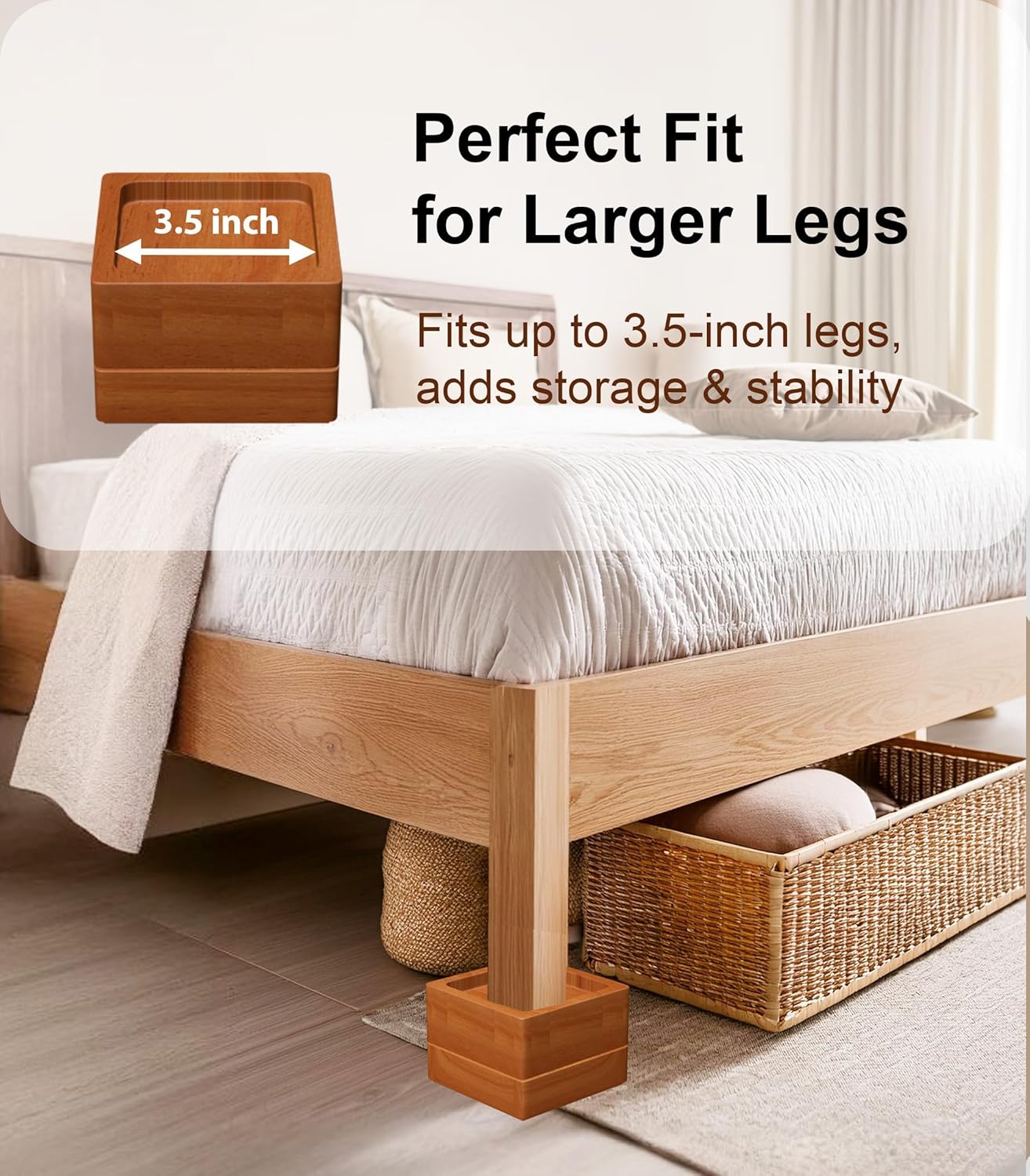 Elevate furniture with versatile wood risers, creating extra bed space.