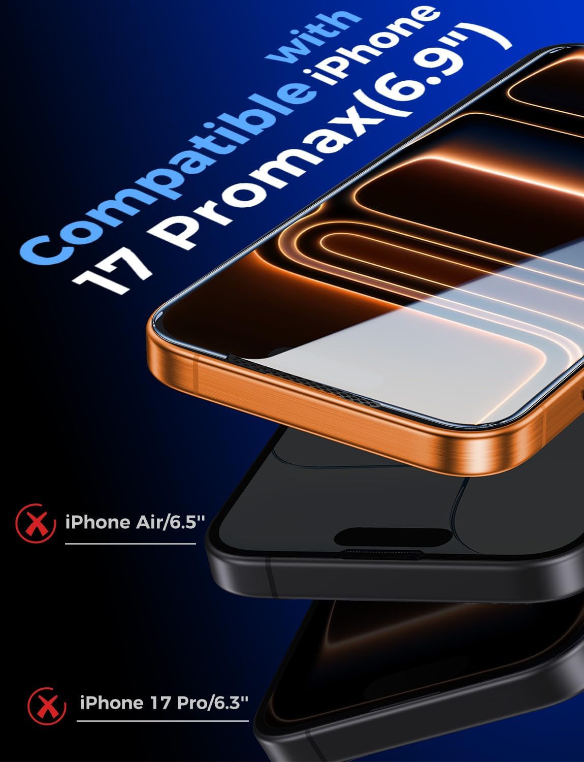 [Screen Protector Compatible with iPhone 17 Pro Max 6.9″] Specially designed ONLY for iPhone 17 Pro Max 6.9″, 100% touch accurate. Not compatible with any other iPhone models.