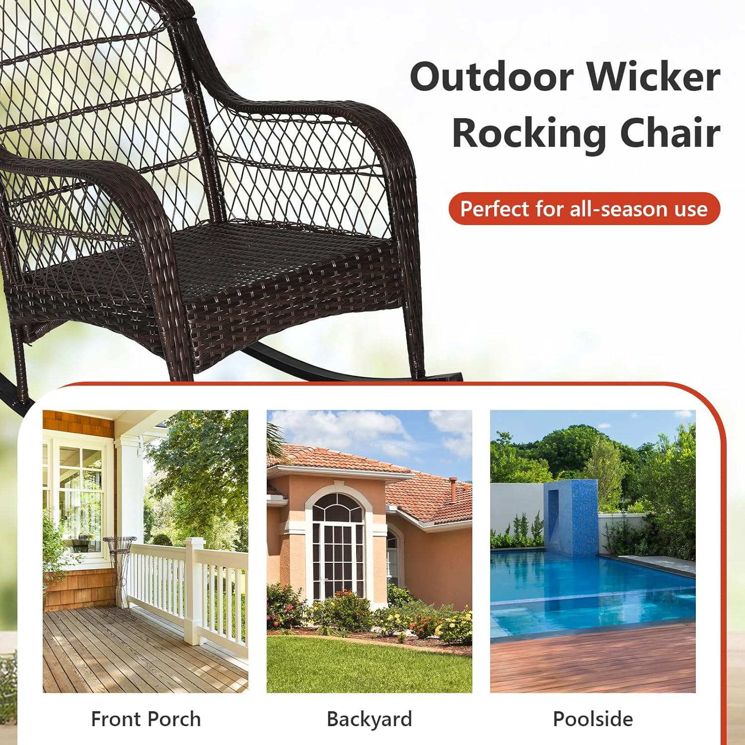Durability & Style Combined: Mainly constructed of hand-woven mix brown PE rattan, the rocking lawn chair provides a touch of sophistication while offering resistance to fading and durability over time.