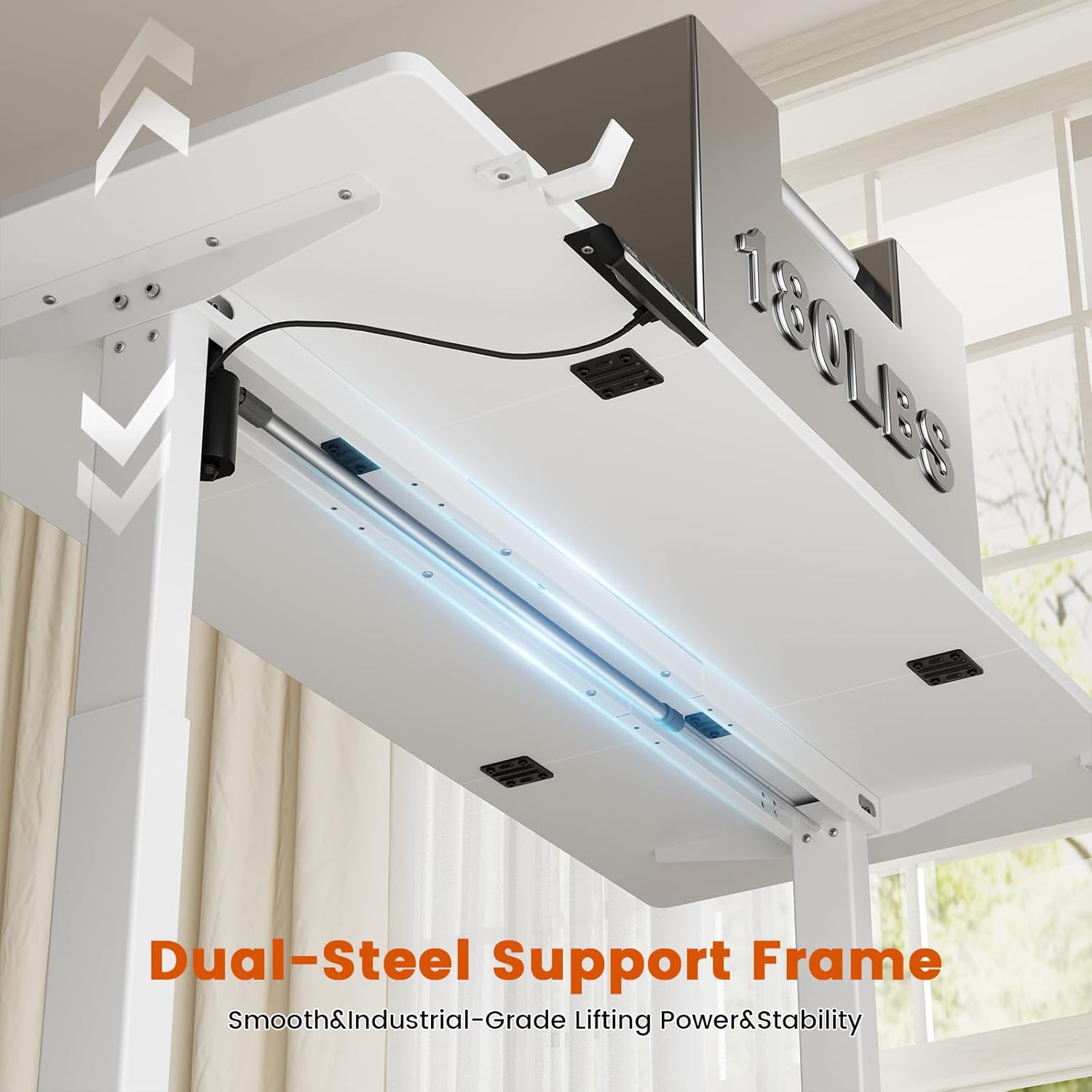 Industrial-Grade Lifting Power&Stability: The stand desk boasts powerful DUAL-LIFT Frame system to ensure a smooth, steady, quieter operation. The powerful motor is cable of lifting up to 180 lbs, with smooth speed at 25mm/s, and noise more more than 45dB