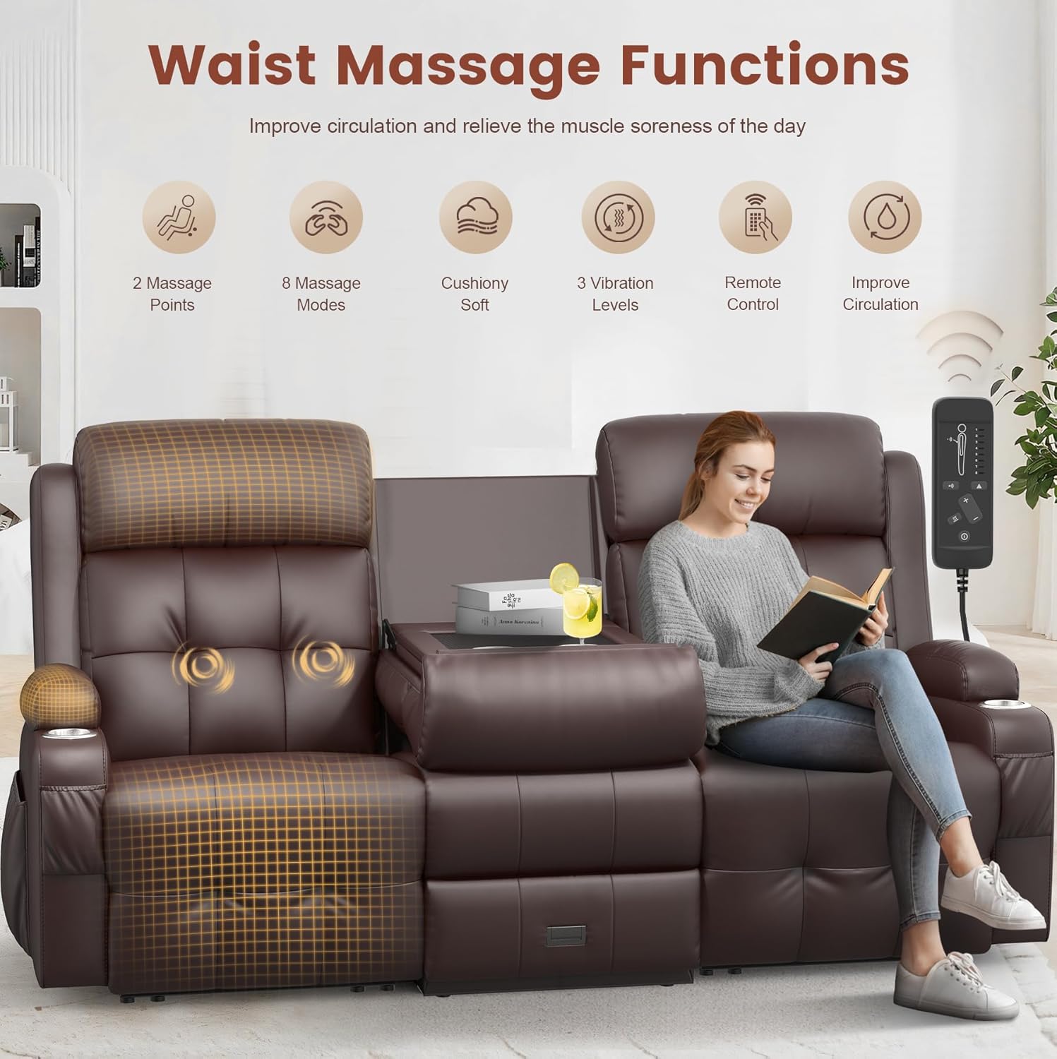 Recliner Sofa, Massage Reclining Sofa 3 Seater Sets Heavy Weight Capacity, RV Loveseat Couch Clearance with Flip Back Console, Storage, Cup Holders, Wall Hugger Reclining Couch for Living Room