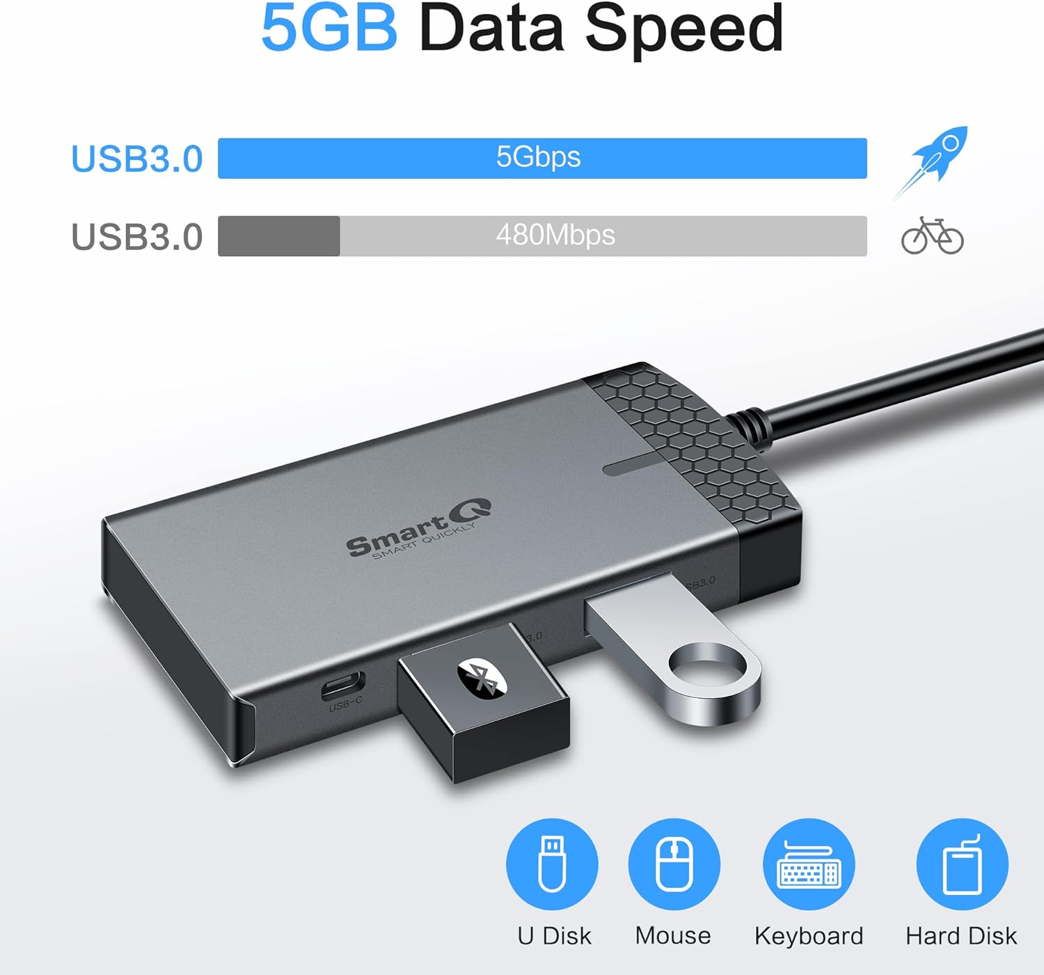 Fast Data Transfer: The USB-C and 2 USB-A ports support data transfer speeds of up to 5Gbps, allowing you to transfer files, back up data, and exchange multimedia quickly.