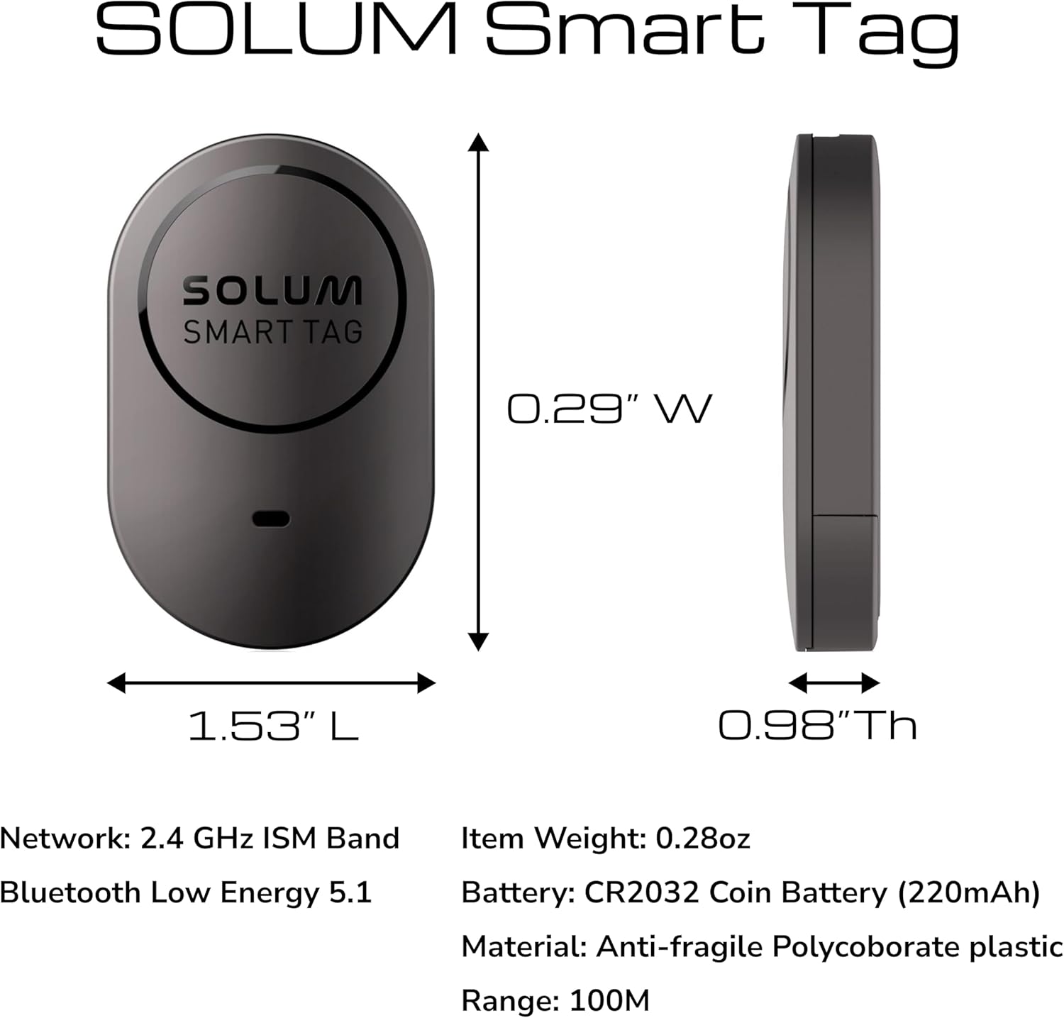 Smaller than SmartTag2. The SOLUM Smart Tag is a straightforward Bluetooth tracking device designed to help Samsung users locate keys, bags, and other small items. It connects with compatible Samsung phones and tablets to show item location on a map or trigger a ringtone when the tag is nearby, making it useful for everyday items you often misplace. Its compact, lightweight build is easy to attach to keyrings or slip into bags, and basic dust/water resistance adds some durability for daily use. High quality.**Verdict:**This Smart Tag is a practical, Samsung‑focused item locator that helps reduce stress from misplaced items. It’s best for users already in the Samsung ecosystem who want a simple, Bluetooth‑based tracking solution for keys and bags, though it’s less capable for tracking over long distances or outside Bluetooth range.