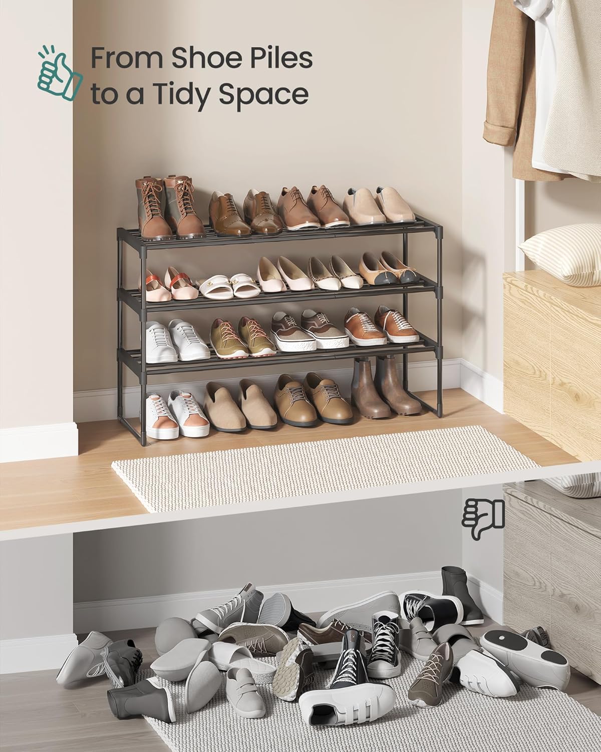 13 reviews for SONGMICS Shoe Rack, 3-Tier Shoe Organizer, Metal Storage Shelf, Upright or Upside Down, for 16-20 Pairs, Stackable, for Entryway, 11.8 x 36.2 x 21.7 Inches, Black ULSA303B02