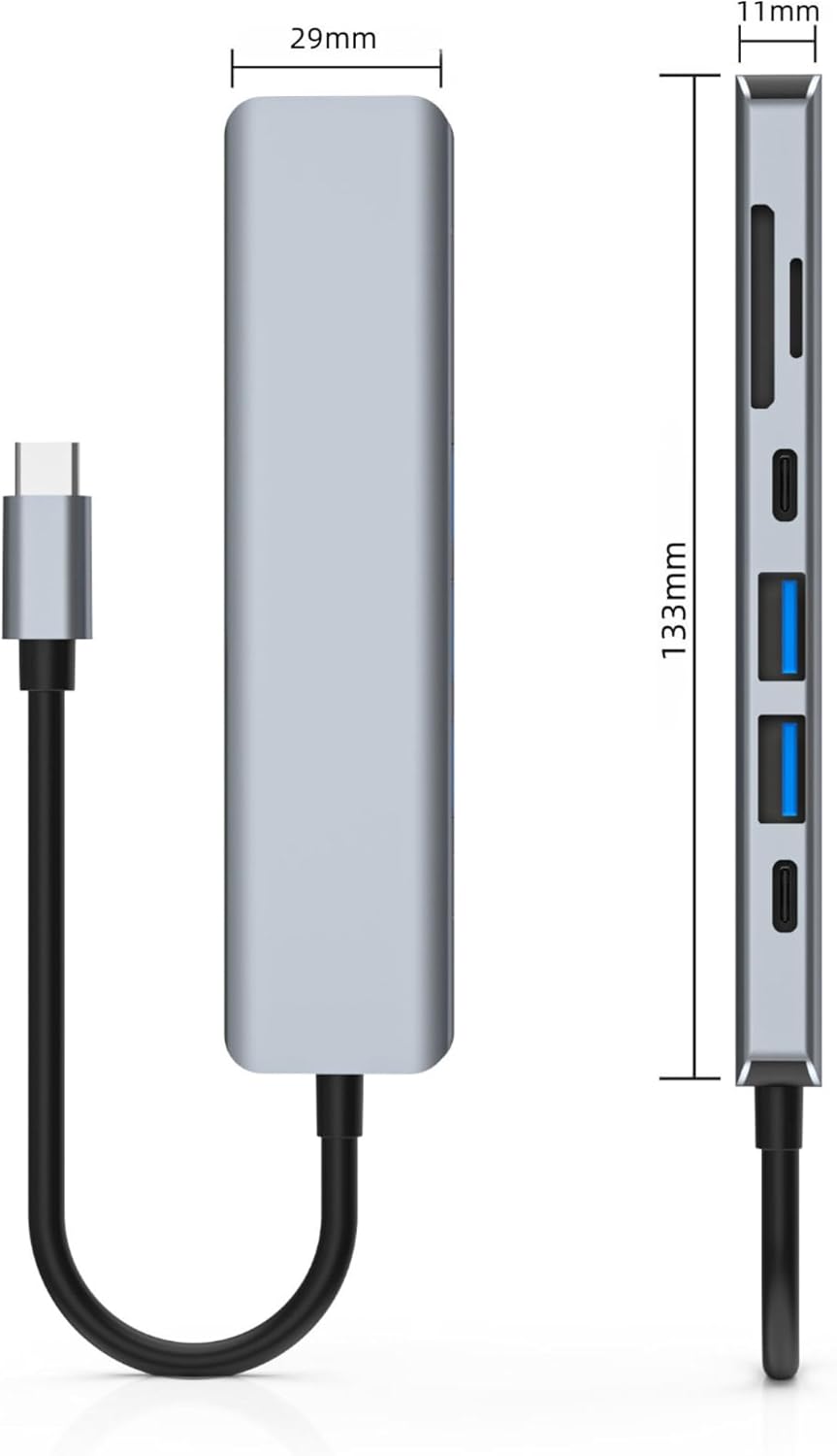 Powerful 7-in-1 USB-C hub featuring 100W fast charging, 480Mbps SD/TF card reader, smart chip technology, and compact mini design. Fast, efficient, and perfect for daily use.