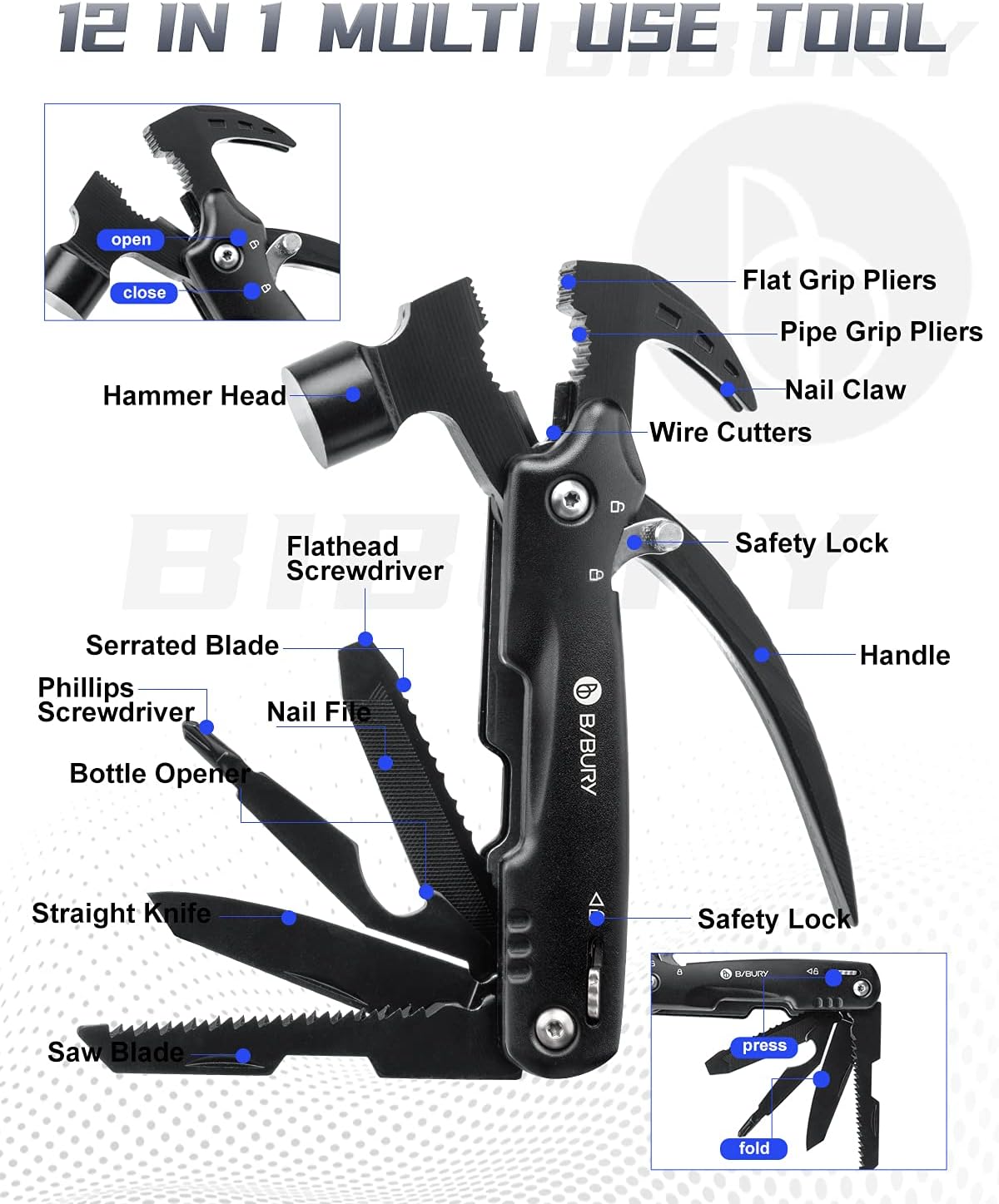 BIBURY 12 in 1 Hammer Multitool Camping Tool