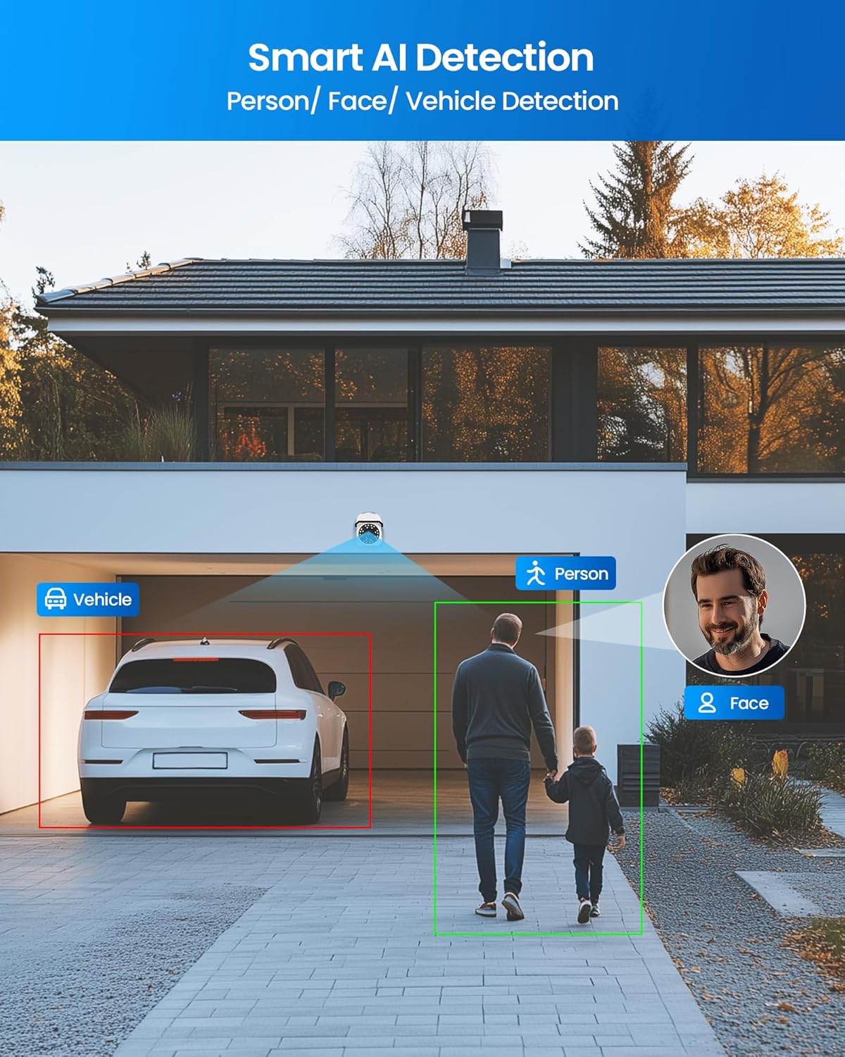 【Smart Person/Vehicle Detection & Instant Alerts】–Advanced AI accurately distinguishes people & vehicles from other motion, reducing false alerts by 90%. Get real-time notifications via app alerts, emails, or siren alarms when threats are detected—ensuring you never miss critical events.