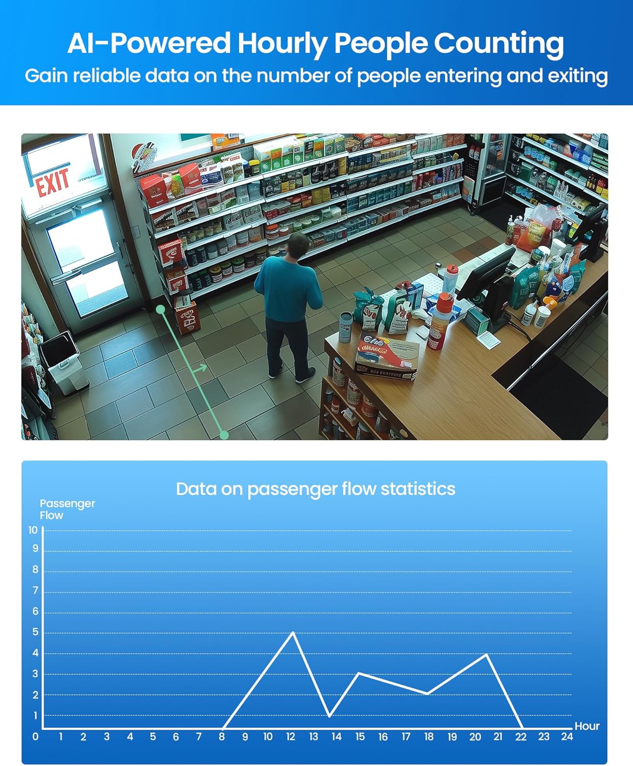 【AI-Powered Hourly People Counting】–This system automatically counts people entering and exiting any space (stores, offices, venues, etc.), providing reliable hourly data to optimize operations, improve customer experience, and enhance security.